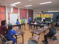 始まりの会では、絹谷分校の友達の自己紹介と学校紹介がありました。指文字や手話で発表してくれたので、平校の子ども達にとってとても内容が分かりやすく、安心して聞くことができたようです。。