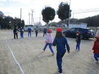 次に、校庭で、ドッチボール、氷鬼、だるまさんがころんだを行いました。どのゲームも大盛り上がりで、子どもたちの笑顔がたくさん見られました。特に、だるまさんがころんだでは、「だるまさんがころんだ」と掛け声をかけるのではなく、「1・2・3~」と声と指で数を数えたり、走って逃げる際に、「ストップ」という掛け声とともに旗を挙げたりと、平校の友達も目で見て分かるような工夫があったので、みんなで楽しむことができました。