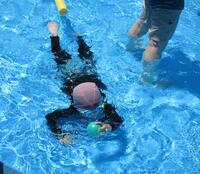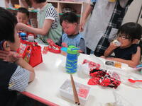 とても暑い日でしたが、本校の広いプールで水遊びを楽しんだ後は、いろいろな友達とお弁当を食べたり、好きなおもちゃを出して遊んだりしました。