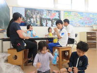 子ども達は、オンライン交流で、自己紹介をしたり、一緒に〇×クイズに取り組んだりしていたので、この日も、あっという間に打ち解けて、「〇〇ちゃん、となりでお弁当を食べよう!」「これ、使っていい?」などと積極的にやりとりをしていました。