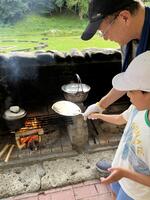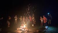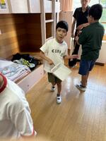 1日目は、入所式、室内サーキット、野外炊飯、キャンプファイヤーを行いました。平校の児童は入所式での児童代表挨拶を務め、大勢の友達や先生、職員の前で堂々と挨拶をすることができました。初めは、久しぶりに会う友達や初めて会う先生に緊張している様子も見られましたが、1日の後半になると、平校以外の友達や先生の輪に自分から入り、楽しむ姿が見られました。特に、キャンプファイヤーでは、友達と列になり一緒に歩いたり、ダンスを踊ったりして笑顔がたくさん見られました。