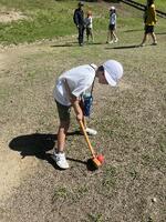 2日目は、グラウンドゴルフやアーチェリーの野外活動と退所式を行いました。野外活動では、班ごとに分かれ、目標を話し合って決めました。相手が分かるように伝えたり、受け答えをしたりして、協力する姿が見られました。また、実際に身体を動かす場面では、先生や職員の方の話をよく聞いて(見て)活動することができました。