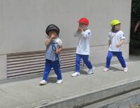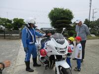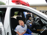 事後学習では、「いかのおすし」について、ロールプレイで分かりやすく教えていただきました。その後、白バイとパトカーの見学をさせていただき、子どもたちは目を輝かせていました。