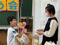 子ども達は、誕生会では、司会やあいさつなど、それぞれの役割を果たして会を進めるできました。誕生者に喜んでもらおうと、折り紙で作ったお花や校庭に咲いている花を摘んでラッピングした本物の花束をプレゼントして、相手を思いやって行動する素敵な姿が見られました。