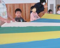 「よろしくねの会」では、自己紹介のあと、みんなで「パイナポー体操」を踊ったり、パラバルーンで遊んだりしました。また、園庭では、年中児・年長児・平校の混合チームでリレーをし、盛り上がりました。