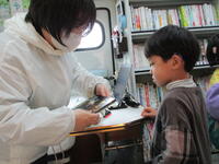 当日はあいにくの雨でしたが、子どもたちはいわき号が到着すると早速、バスの中に入って季節の絵本や興味のある本をうれしそうに選んでいました。