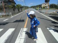 Bグループは、交通ルールを確認した後、実際に校外に出て道路の横断の仕方や狭い道での歩き方について学習しました。道路を横断する際は、左右を確認したり、狭い道では、一列になって歩いたりと、交通事故にあわないように気を付けて歩行することができました。