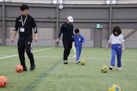 まず、担当者からデフサッカーやデフリンピックのことについてお話をいただきました。その後は、実際にサッカーを体験し、楽しくサッカーボールに触れたり、軽く体を動かしたりしました。
