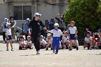 交流校の草野小学校で、「交流春の大運動会」が開催され、低学年、中学年、高学年のブロックに分かれて、それぞれ個人種目や団体種目に参加しました。今年のスローガンは、「自分のために!チームのために!全力でチャレンジ!」。子どもたちもそれぞれ全力を発揮して頑張りました。開会式、閉会式では、平校教員がろう通訳(聴者の言葉を聴者の通訳人が手話で表現し、ろう者の通訳人が聴者の通訳人の手話を、ろう者に伝わる手話に置き換えて伝える方法)として、指揮台の隣に立ち、手話通訳をしました。通訳があることで、安心して活動に取り組めました。保護者の皆様、暑い中、応援ありがとうございました。
